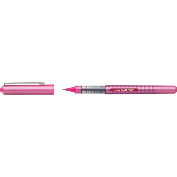 Foloseste cerneala rezistenta la apa si este prevazut cu sistem de curgere a cernelii patent Uni-ball care asigura consistenta scrisului pana la ultima picatura.