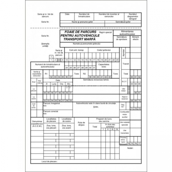 Comercializam din stoc Foi de Parcurs Marfa pe hartie offset, finisate pe format A4 si capsate in carnete a cate 100 file. Tipizatele sunt brosate cu coperta lucioasa de foarte buna calitate, prevazute cu un design atractiv.